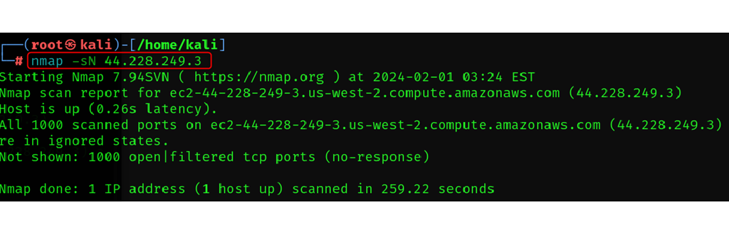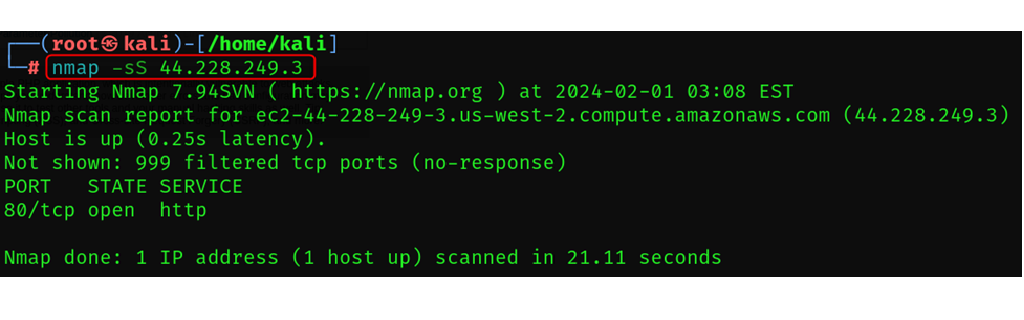 In this type of scan, the Nmap doesn’t makes full connection, it acts as an passive scan. Means, in other type of connection the port scanners, act like brute forcing into the system.