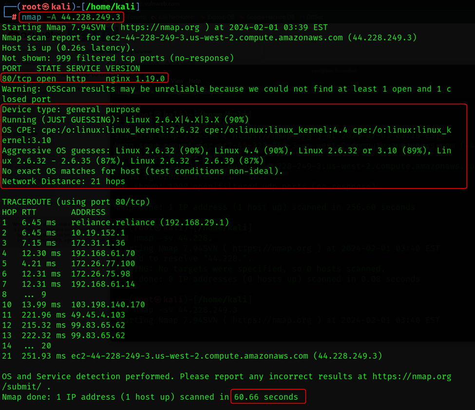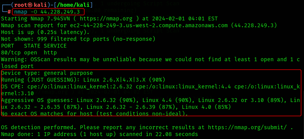 Increased Scan Time: Compared to basic port scans, OS detection involves additional probes and analysis, making the scan slower and potentially resource intensive.